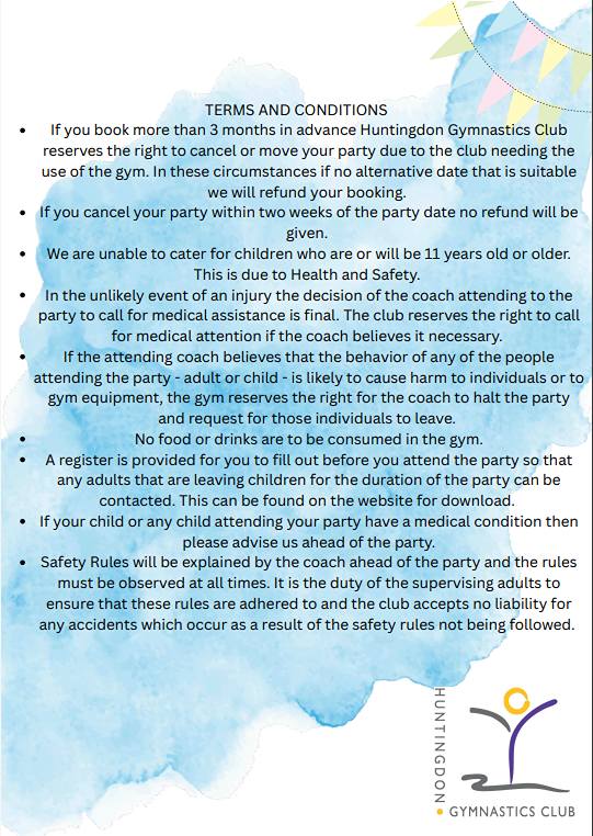 Huntingdon Gymnastics Club has to be the most popular place in Huntingdon for children's parties.